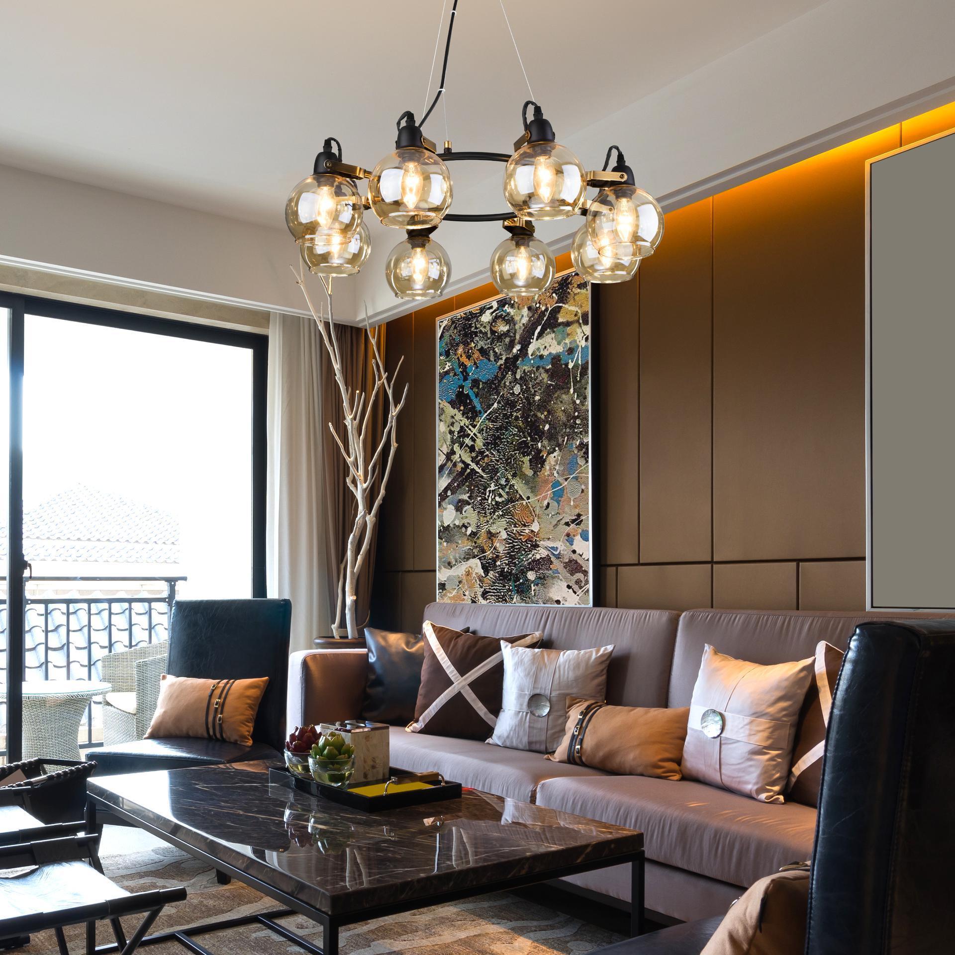 Преобразить ваше потолочное пространство и организовать качественное освещение на площади 24 м кв. поможет стильная люстра в стиле loft. Строгий внешний вид и конструктивная простота форм привнесут в современный интерьер индустриальный стиль, а гармоничный цветовой тандем из черного и бронзы подчеркнет его. В восьмирожковой люстре используются сменные лампы с цоколем E14, рассчитанные на максимальную мощность 60 Вт. Потолочный светильник оснащен стеклянными плафонами и поворотным механизмом, позволяющим направлять световой поток в нужном направлении. В производстве люстры использован высококачественный металл с надежным защитным покрытием и закаленное стекло. Наш интернет-магазин предлагает недорого купить потолочную люстру с бесплатной доставкой по Москве и России.
