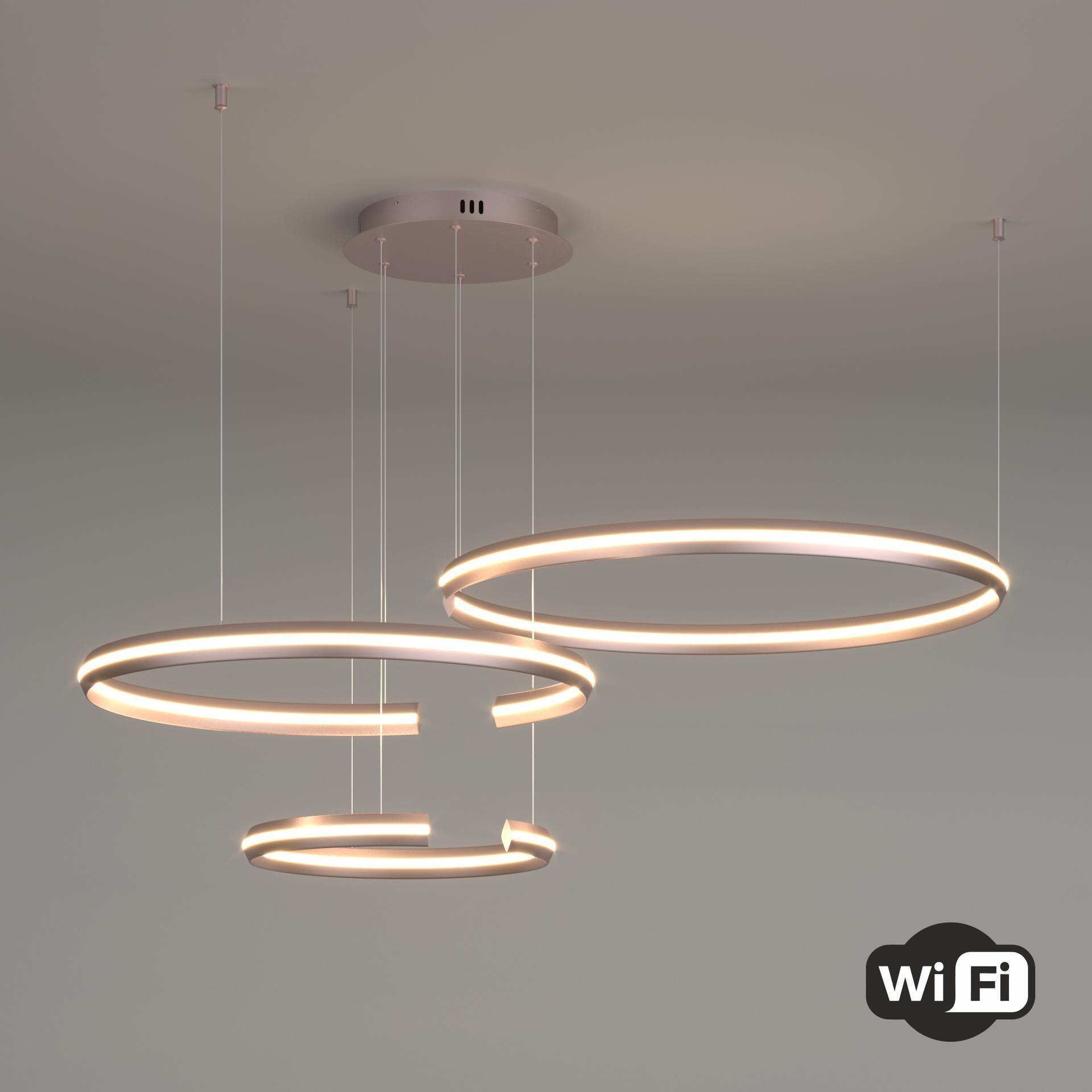 Подвесной светодиодный светильник с ПДУ и управлением по Wi-Fi 90280/3 сатин-никель поможет организовать качественное освещение на площади 44 м кв. и украсить современный интерьер. Высокотехнологичный светильник оснащен экономичными SMD светодиодами мощностью 160 Вт, создающие световой поток 8000 лм. С помощью пульта управления и мобильного приложения Minimir Home можно регулировать яркость и цветовую температуру, доступную в трех значениях: 3300, 4200 и 6500К. В производстве подвесной LED люстры использовали высококачественный металл с надежным защитным покрытием. Подсвесная светодиодная люстра подходит для установки на любые поверхности, в том числе монтируется в натяжные и подвесные потолки. Наш интернет-магазин предлагает купить подвесной светодиодный светильник с управлением по Wi-Fi по низкой цене с доставкой по России.