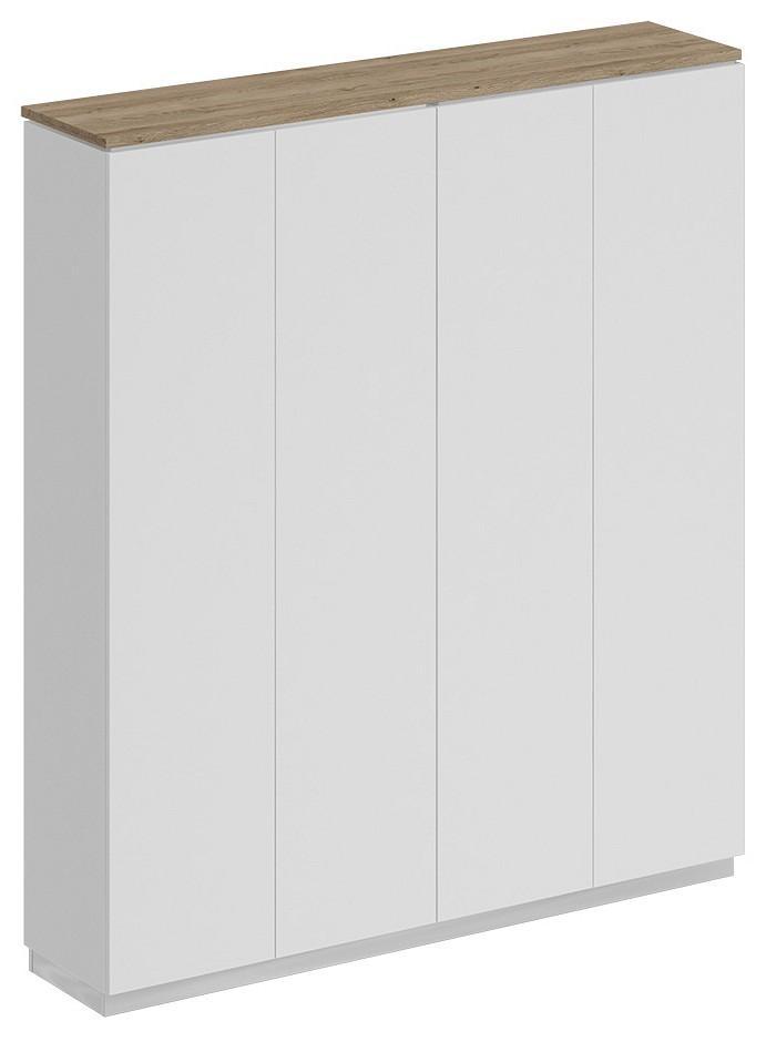 Шкаф состоит из 2-х стеллажей, топа на 2 шкафа, цоколя и дверей.