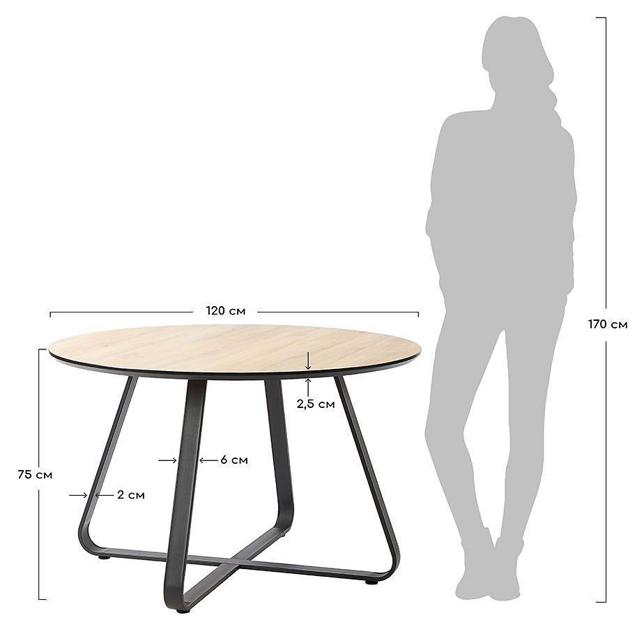 Круглый обеденный стол Toronto - элегантный современный предмет интерьера. Изогнутые скрещенные металлические ножки придают столу устойчивость. Столешница выполнена из МДФ и имеет популярный в дизайне мебели цвет дуба, который гармонично впишется в интерьер с предметами из дерева. Стол подойдет как для обеденной зоны гостиной, террасы или веранды, так и для интерьера кухни.