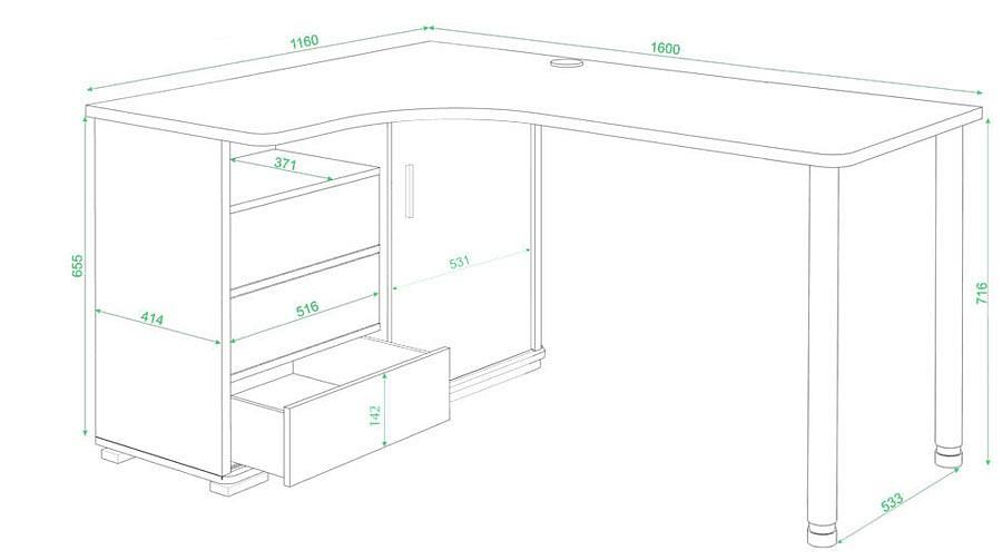 Работа или развлечения – Стол письменный СР-165СМ MER_SR-165SM_SH-LEV, созданный брендом 2735048, прекрасно подойдет для выполнения любых задач. Данная модель входит в коллекцию «Домино» и адаптирован под нужды каждого члена семьи. Благодаря оптимальным размерам изделия (1600Х1160Х745 мм) вы сможете с комфортом заниматься любимыми и важными делами. Базовая комплектация включает в себя непосредственно письменный стол, тумба: