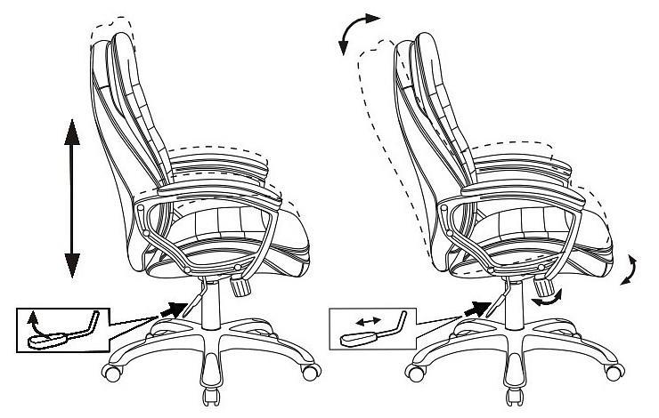 Механизм качания с фиксацией с вертикальном положении. Регулировка высоты - газлифт. Подлокотники пластиковые, с мягкими накладками.