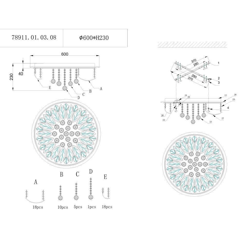 Семь Огней создает продукт от эскиза до готового шедевра. Над созданием светильников трудятся одни из лучших дизайнеров и конструкторов. Наша компания предъявляет высокие требования к производимой продукции, что подтверждено сертификатами качества.ПРЕИМУЩЕСТВАСтильный дизайнНаличие LED подсветкиФункция ночного освещения с низким потреблением электроэнергииУправление функциями люстры с помощью пульта ДУ либо с помощью выключателяПРИМЕНЕНИЕПотолочная люстра предназначена для основного освещения помещенийЛюстра подойдет в гостиную, зал, спальню или кухнюКОНСТРУКЦИЯ И МАТЕРИАЛЫЛюстра изготовлена из высококачественных материалов и является безопасной для человека, животных и окружающей средыИспользуемые материалы:металл, стекло, хрустальИсточник света - лампы накаливания мощностью до 60 Вт, светодиодные лампы мощностью до 12 ВтКрепление - накладным способом, с помощью шуруповУдобный крепеж подойдет под все виды потолков: бетон, гипсокартон, натяжные и деревянные потолки.