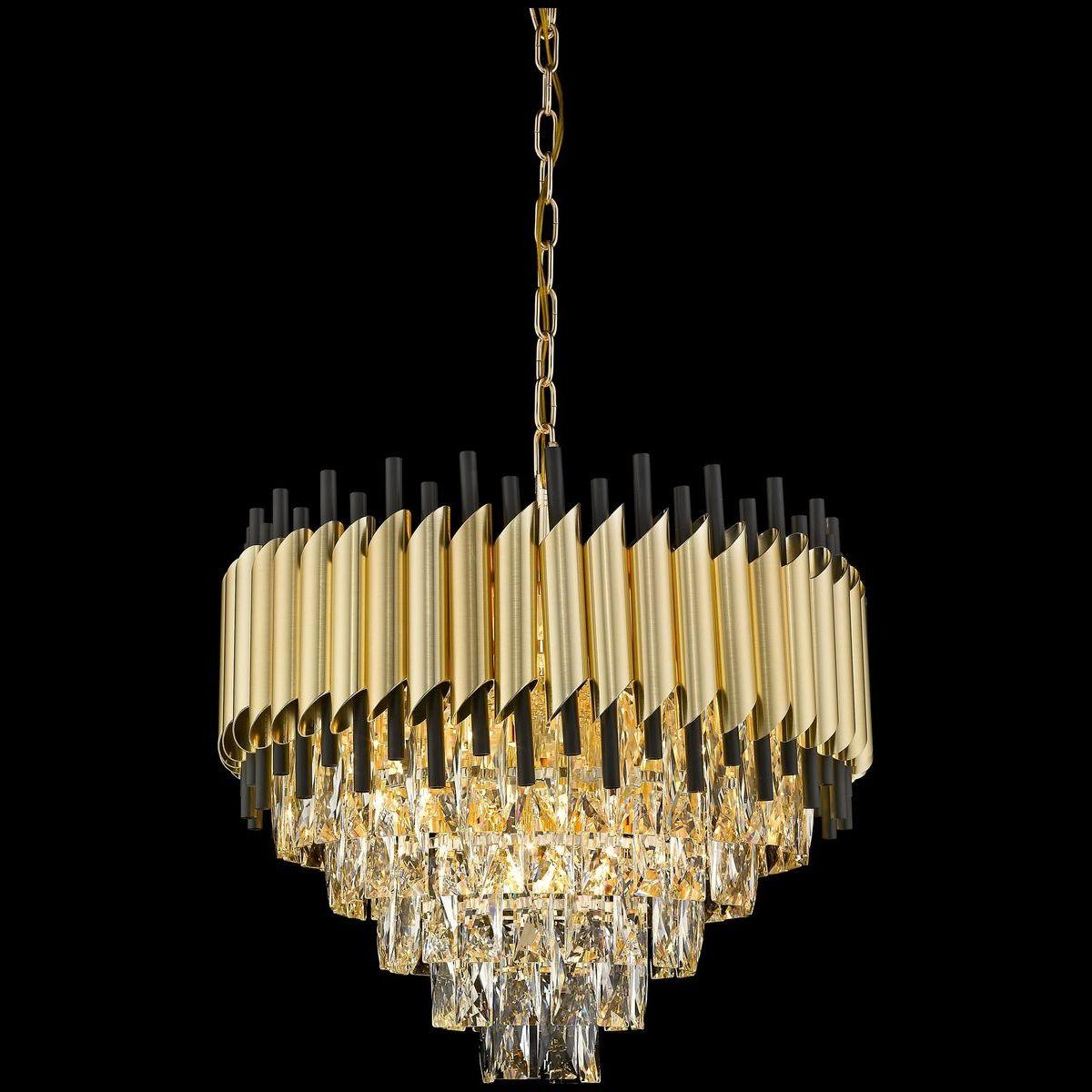 Изящная модель WE138.12.403 от немецкой компании Wertmark относится к коллекции Cartuccia и отлично подойдет для установки на потолок в гостиной, оформленной в стиле модерн. Подвесная люстра Wertmark Cartuccia WE138.12.403 с конусными плафонами осветит помещение площадью 26.7 кв. м. Производитель Wertmark рекомендует использовать для устройства лампы накаливания с цоколем E14 и мощностью 40 W. Прибор произведен с использованием материалов: хрусталь и металл и может использоваться для натяжного потолка. Основным цветом товара является золотой, черный и прозрачный. Подвесная люстра WE138.12.403 продается по цене 56138 руб. Торопитесь сделать заказ в интернет-магазине SvetONe.