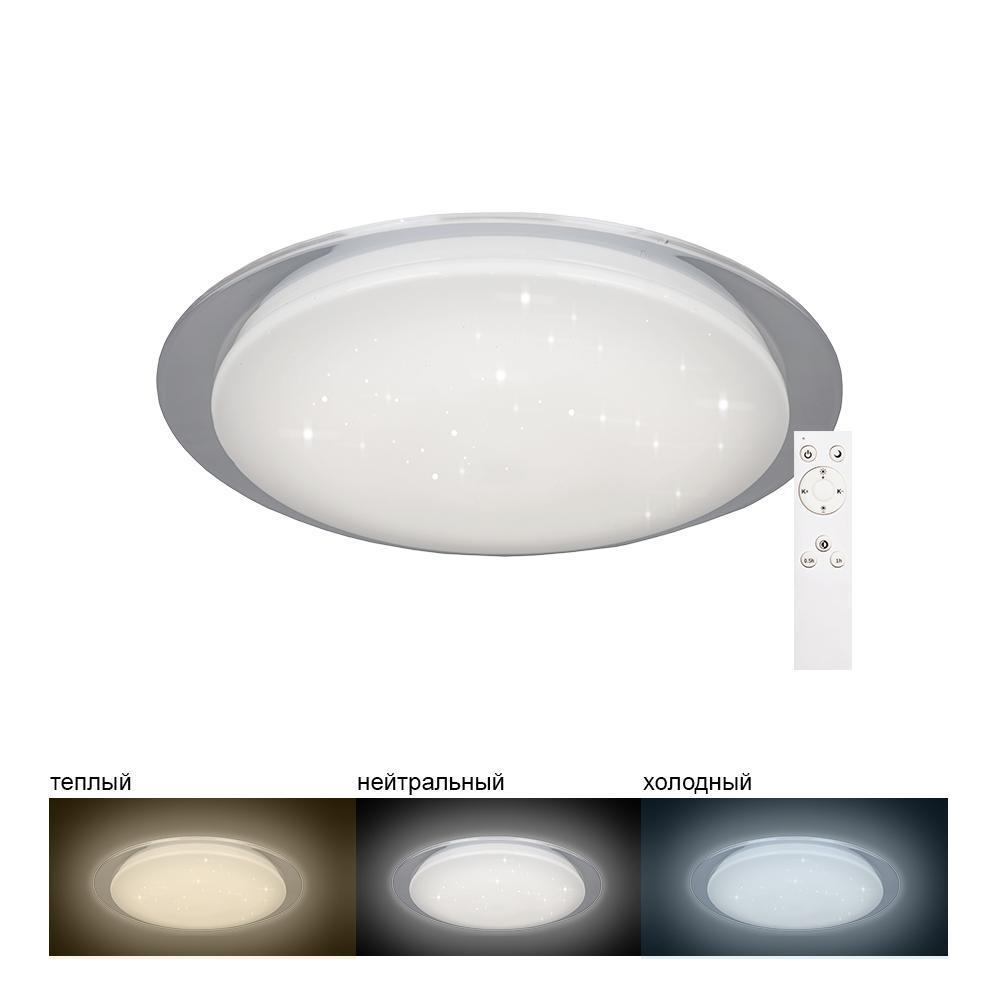 Светильник накладной светодиодный, потолочный управляемый (ДПО) FERON AL5000, 36W, 3000К-6500K (теплый белый-дневной), 230V, 2900Lm, IP20, цвет белый, корпус штампованная сталь, рассеиватель матовый пластик, серия "звездное небо", 450*450*73