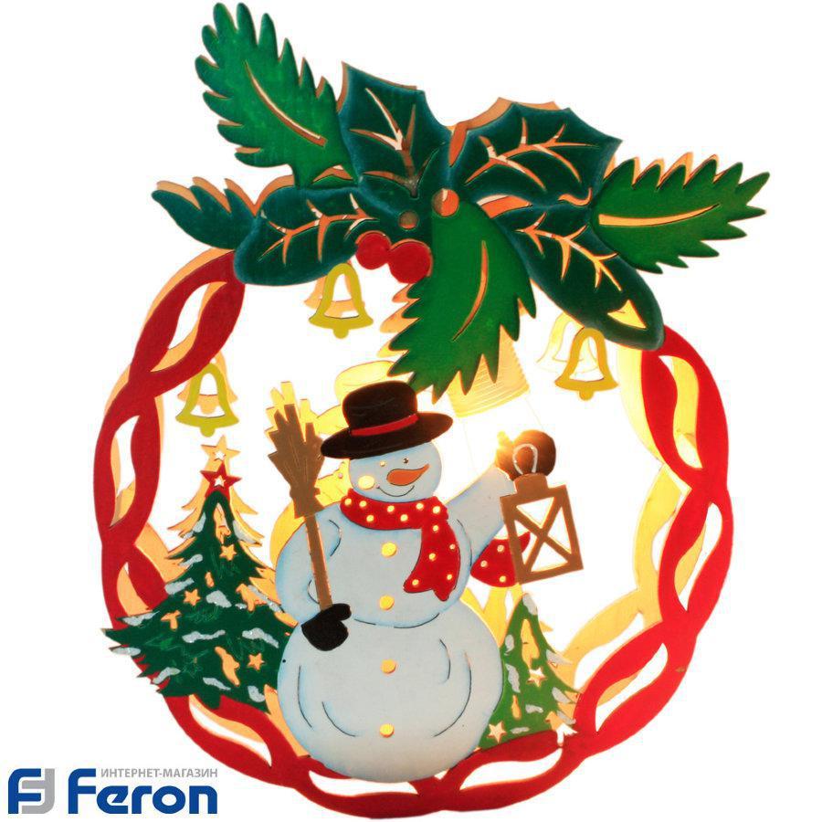 Световая фигура "деревянный шар со снеговичком", lt068
