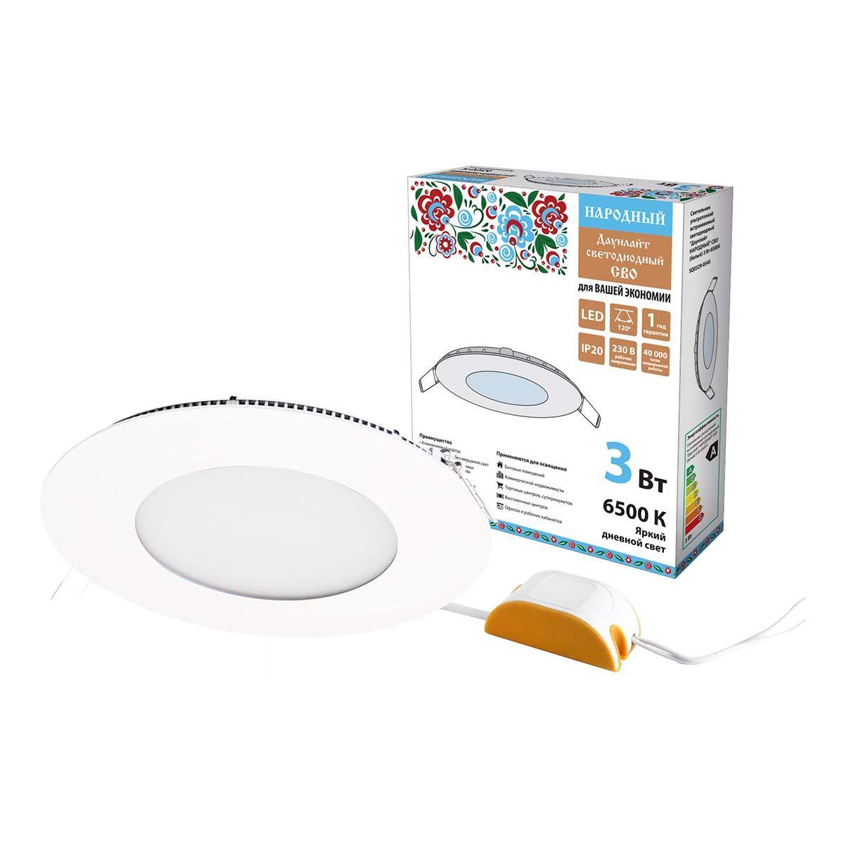 Встраиваемый светодиодный светильник Даунлайт Народный СВО SQ0329-0545